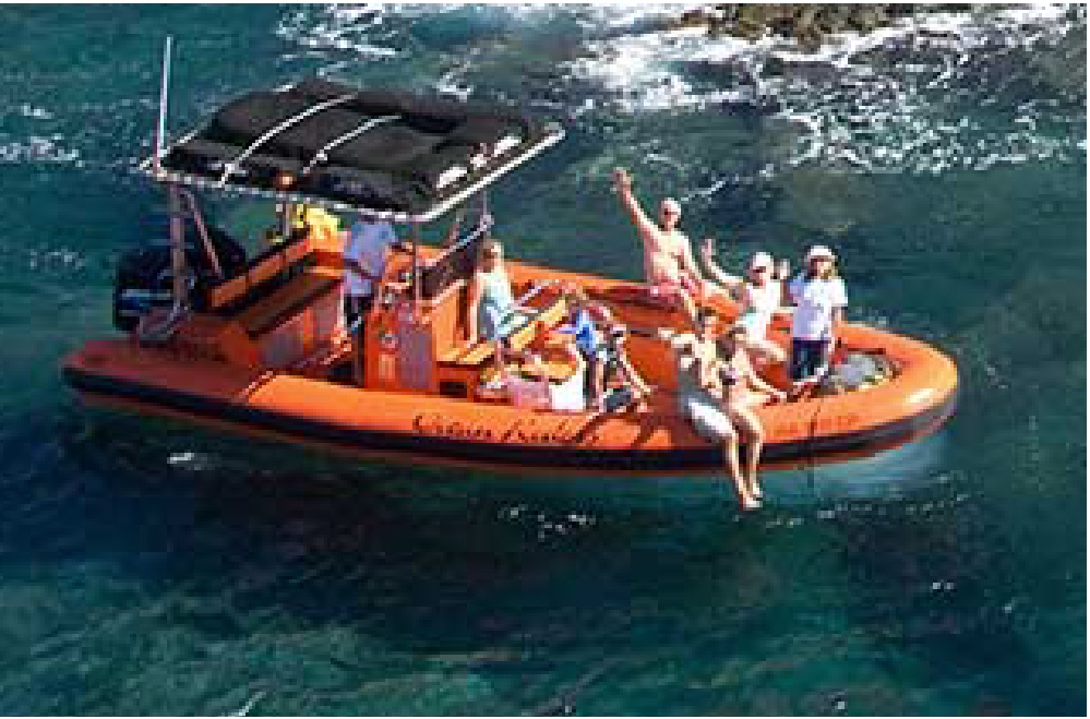 Ocean Riders is owner operated since 1988 and is the original Lanai Rafting Adventure and the only Maui Rafting Company operating rigid=hull inflatables, called H.B.I.s which are used for search and rescue with the U.S. Coast Guard. This vessel measures 30 feet in length and is powered by twin 250hp Mercury Outboard engines.