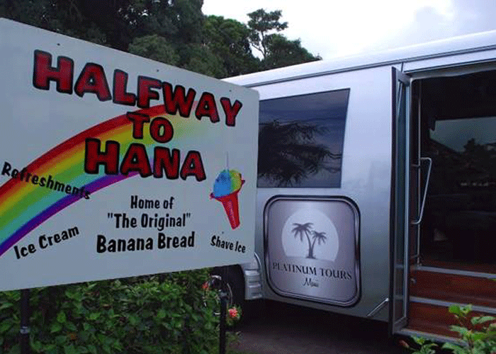 Get ready for an unforgettable day tour to Hana that will combine adventure, relaxation, comfort, luxury and overall first class service! You'll ride in one of Maui's most luxurious and newest custom built Platinum Tour buses over the famous 52-mile journey to Hana, all the way into this exquisite shoreline town that is considered the heart of Maui. As soon as you take your first step into your first class mini coach, you will know you are in for a treat! You will be very impressed by the comfort of your seat and the amount of legroom you will have during your entire trip, allowing you to relax and stretch out while enjoying this one-of-a-kind excursion to Hana. If the quality and comfort of your seating wasn't enough, you will also have incredible viewing through large side windows and custom built skylights. Your tour also includes two hot meal stops at two renown restaurants, and narration by a certified local guide. This is definitely an opportunity to enjoy a Maui Hana tour that compares to nothing around... it's sightseeing in Maui at a whole new level!